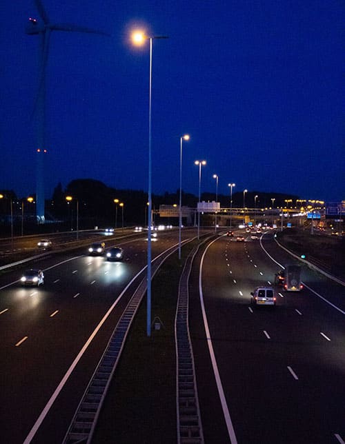 Bij de eerste foto is er een tijd gebruikt van 1/100 seconden. Met deze sluitertijd kun je nog goed de auto’s zien. Bij de tweede foto is voor het gebruik van 1′ seconden gekozen, nu zie je dat de autolichten korte strepen worden. Bij de laatste foto is er een belichtingstijd gebruikt van 60′ seconden, nu zijn alle auto’s die in deze 60 seconden voorbij zijn gekomen een lange streep geworden.