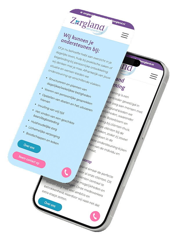 In dat gesprek spraken we af hoe we het gingen aanpakken. Zorgland kent hun eigen verhaal het beste, dus zij gingen de teksten schrijven. Wij gingen die teksten redigeren, SEO-optimaliseren en zorgen voor een nieuw, fris webdesign dat past bij de nieuwe koers. Een fijne samenwerking waarbij ieder doet waar ie goed in is.
